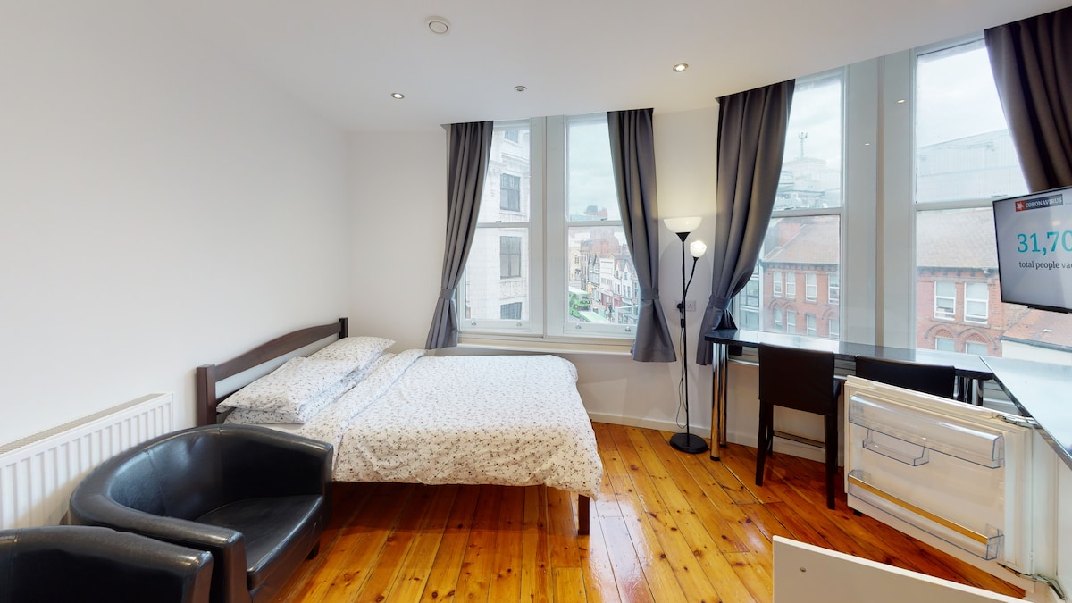 The Smart Studio is a compact, stylish city base that sleeps two and has everything you need — plus a few surprises like a fully equipped kitchenette. Enjoy a 2000-sprung king-size bed, space to work or relax, a heated bathroom floor with a power shower and de-mist mirror, and fast, free Wi-Fi — all in a modern, great-value serviced apartment designed for comfort and convenience.