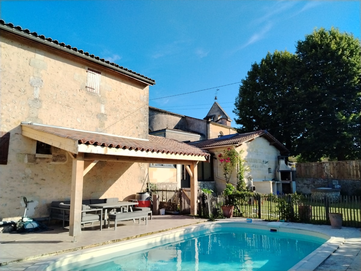A los pies de una fortaleza del siglo XIII, en el corazón de los viñedos de las primeras costas de Burdeos, le damos la bienvenida a una antigua propiedad de 1860 completamente renovada. Podrá disfrutar de la piscina (privada para los huéspedes), una terraza privada (con una mesa para 4 personas, barbacoa), el jardín cerrado y arbolado, minigreen de golf. El aparcamiento se encuentra en el patio y es seguro. Somos bilingües (inglés) y podemos ayudarte a descubrir la zona.