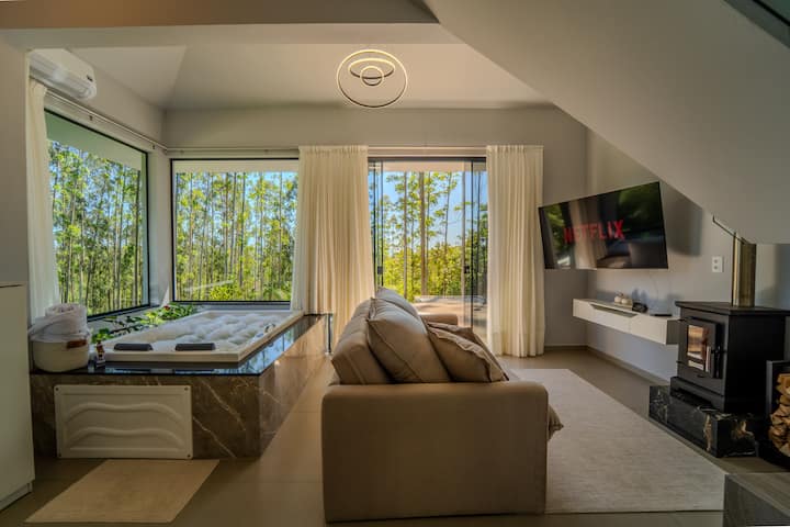 Villa de 4 habitaciones en el bosque | Teatro, pileta, O2, comida