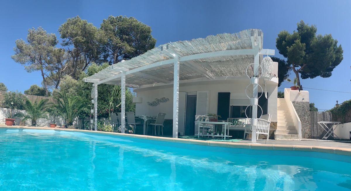 A 500m de la Cala, se encuentra esta acogedora villa, con piscina, espacios exteriores cuidados e interiores llenos de luz y color. Gran terraza diáfana y luminosa. Si buscas paz y tranquilidad en un entorno idílico, con todas las comodidades a tu alcance, no lo dudes… esta es tu casa!! (Gay friendly and bicycle friendly)