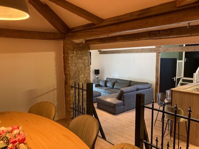 El moderno apartamento de vacaciones «Zur Tenne» se encuentra en la casa de campo de Lorena, cuidadosamente restaurada, en Erbringen, un distrito de la comuna de Beckingen. Céntrico, un punto de partida ideal para excursiones en el triángulo fronterizo de Alemania, Francia y Luxemburgo. Apartamento Zur Tenne 2**** Apartamento de vacaciones tipo estudio en el segundo planta, aprox. 47 m², zona de dormitorio con cama doble y dormitorio dormitorio con cama individual, sala de estar/comedor/cocina, ducha/WC, zona de estar en el jardín. Hasta 3 personas pueden sentirse como en casa aquí.