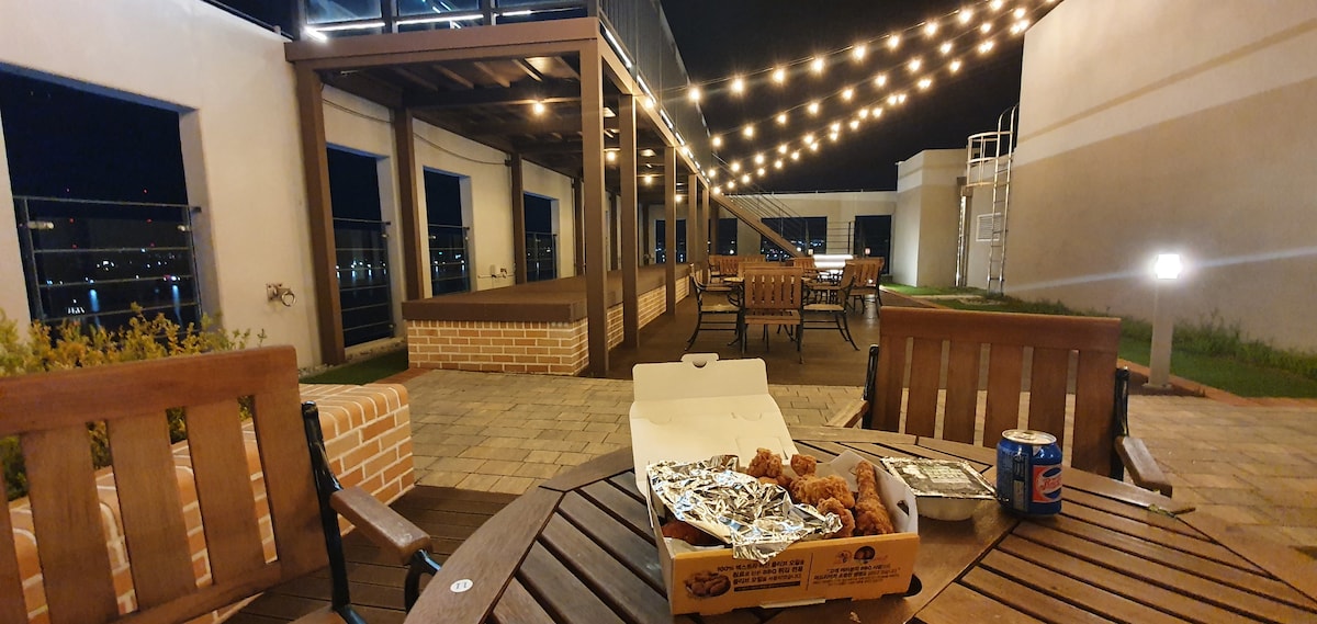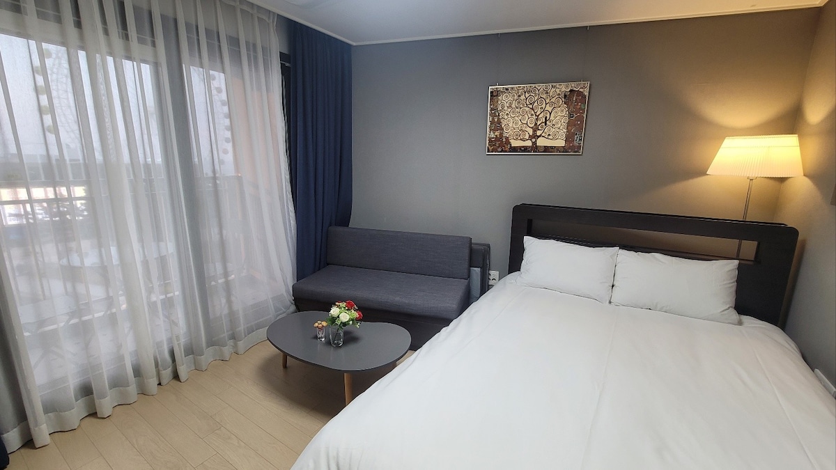 # Con una ubicación céntrica, este espacio tiene una ubicación cómoda y un estilo elegante. ^ ^ Gyeongpo, Jumunjin y Chodang Para usar 10 minutos en auto. ^ ^ Amantes. Amigos. Familia de 4. Parejas.(Bebés. Niños) Lugar tranquilo, limpio y elegante para alojarse. # Esta tarifa de alojamiento se basa en 4 personas. # La capacidad de alojamiento es de 4 personas y puede alojar hasta 6 personas. (Si son más de 4 personas, se incurrirá en una tarifa adicional de 20 000 KRW por persona) * * Por favor avísanos con anticipación. #. Si el número de personas reservadas es diferente al número de personas en la habitación, es difícil entrar, así que coopera para que no haya sanciones. Si tienes más huéspedes, debes avisarnos con anticipación para preparar la ropa de cama. La piscina infinita de la azotea solo está abierta durante la temporada de verano por una tarifa adicional.