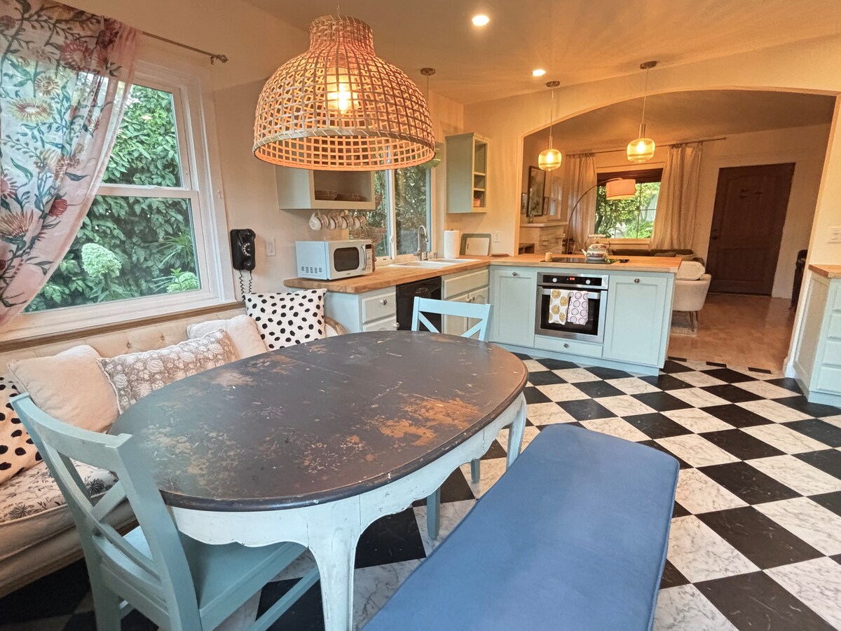 Bienvenido al jardín secreto del centro de Sacramento. Esta adorable casa de campo de estilo misión está a pocos pasos de nuestra querida cervecería local, New Helvetia Brewing Company. Restaurantes, cafeterías, el icónico Tower Theater y mucho más están a dos manzanas. Dirígete en la dirección opuesta hacia el barrio y camina por las calles bordeadas de sicomoros y ve todas las bonitas casas de Land Park. La casa es encantadora y acogedora, el jardín es un sueño y la cocina es perfecta para cocinar y comer en compañía.