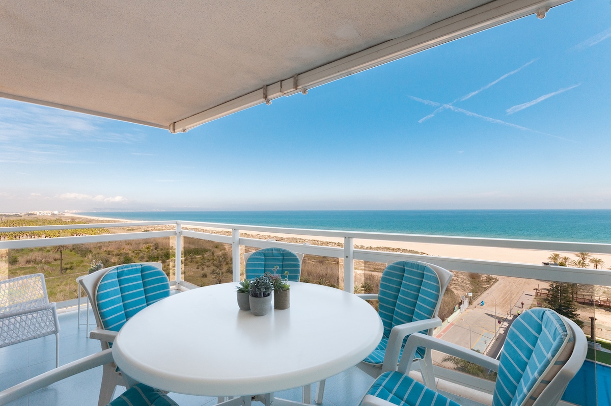 En este alojamiento se respira tranquilidad: ¡relájate con toda la familia! Al final de la playa de Gandía, en una de las mejores zonas, cerca de la playa de l’ Ahuir, se encuentra nuestro apartamento. Ideal para disfrutar de unos días en la playa, o en la naturaleza con tu pareja, familia o amigos. También puedes relajarte en las instalaciones de que dispone el complejo o bien enriquecerte con la historia y cultura de la comarca. Olvídate del estrés y disfruta del momento. nº reg. VT-52974-V