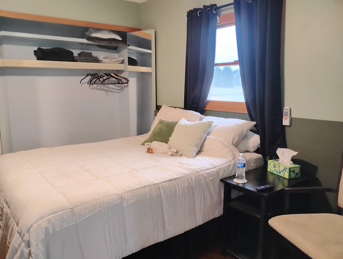 No querrás marcharte de este lugar encantador y único. Tendrás acceso a todo el piso de abajo, tu propio baño y un televisor en tu habitación. La cocina está a solo un paso o dos de distancia. Te daremos un delicioso desayuno y te ofreceremos productos horneados caseros también. Tenemos 3 perros, muy bien educados y, por lo general, muy tranquilos. En su mayoría estarán arriba. Hay 5 pasos hacia la casa. No hay escalones para ti adentro. el registro de entrada es a las 16:00 y el de salida a las10:00.