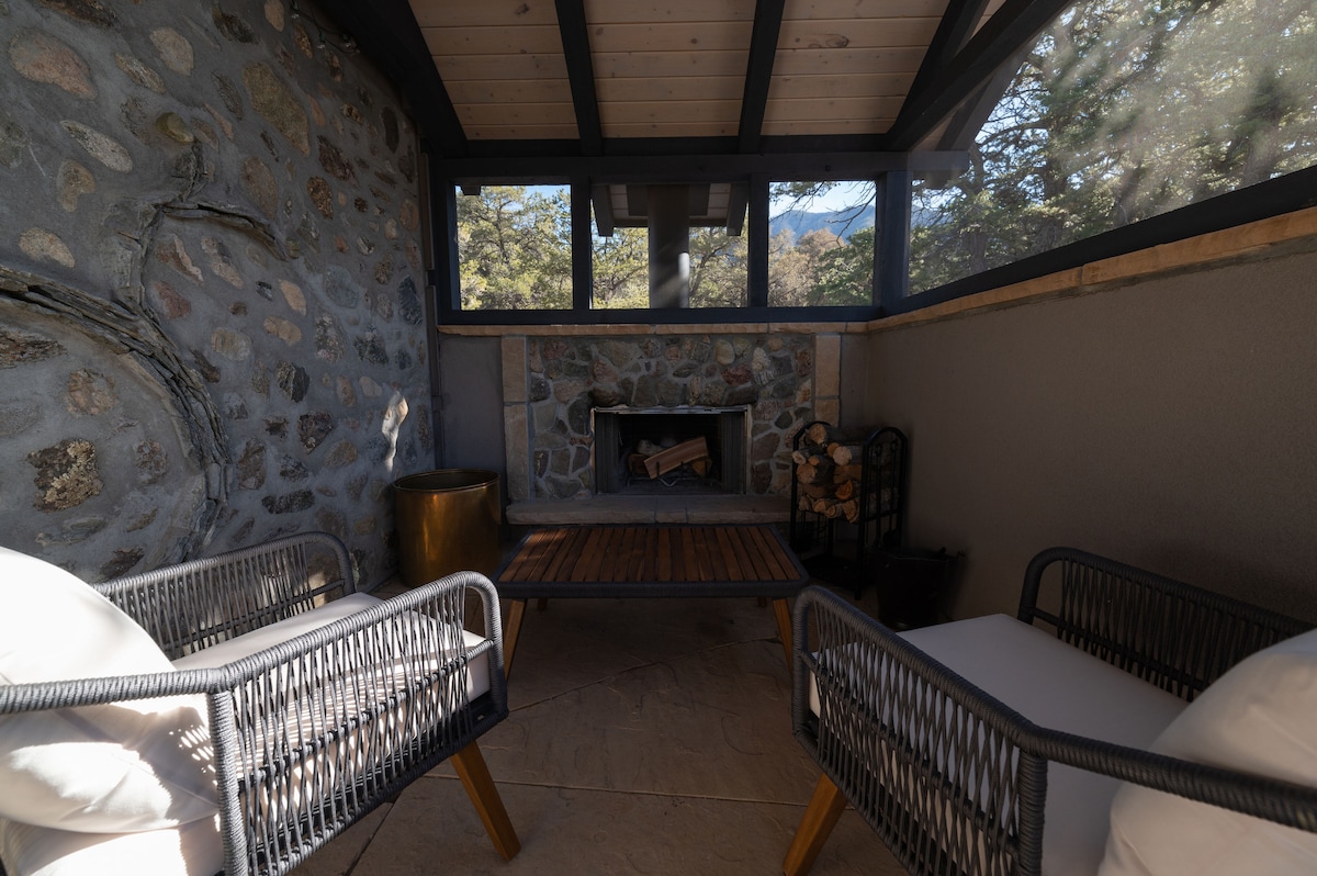 Imagina una cabaña con jacuzzi de madera y cama tamaño king. En una calle sin vecinos en una ciudad de montaña sin descubrir en la base de impresionantes montañas de 14 000 pies. Una cocina abastecida para preparar comidas, cenas al aire libre en el patio. Luz natural entrando en la casa todo el día. Las puestas de sol más vibrantes que jamás hayas visto, por la noche las estrellas te envuelven como nunca antes y una terraza en la azotea para disfrutar del espectáculo de la naturaleza. Disfruta de la noche junto a una de las chimeneas con una película, escuchando discos de vinilo o el crepitar del fuego.
