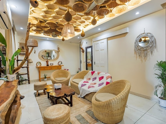 Ubicada en el tercer piso del apartamento High Rise Inn sector 85 Wave Estate (Airport Road), esta elegante morada ofrece una escapada tranquila de la bulliciosa ciudad. Sumérgete en el tema de la selva fusionado con tonos de madera y vegetación en medio de animales danzantes. A 1 km del centro comercial CP. A 3 km del Hospital Fortis.