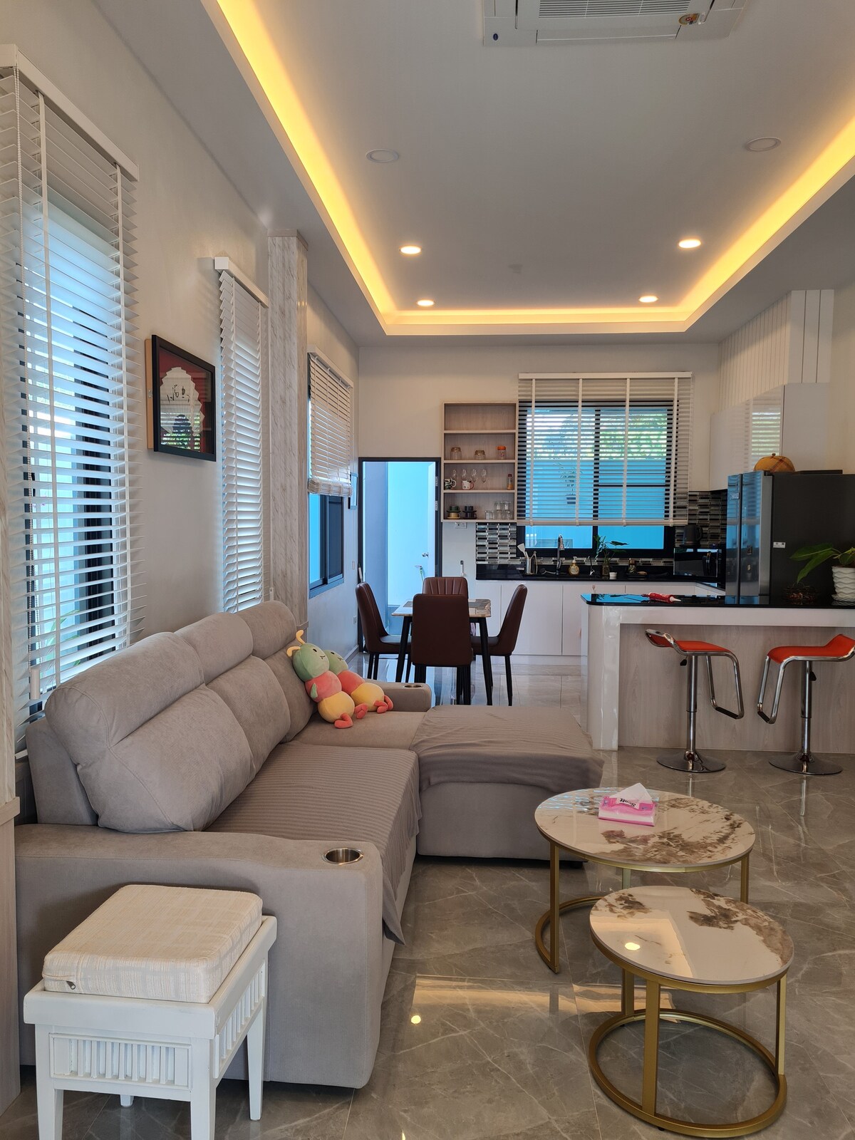 Montana Villa Krabi es una villa privada con piscina en Ao Nang, diseñada para huéspedes que valoran la privacidad, la calma y la vida de lujo acogedor. Ubicado en una zona tranquila a solo 9 minutos de la playa de Ao Nang, restaurantes y cafés, ofrece un refugio tranquilo mientras se mantiene cerca de todo. Disfrutá de tu piscina privada de agua salada y de la terraza en la azotea con vistas a la montaña, perfecta para relajarse por la mañana y al atardecer. Ideal para parejas, amigos o grupos pequeños que buscan una estadía privada con estilo en una villa en Krabi.