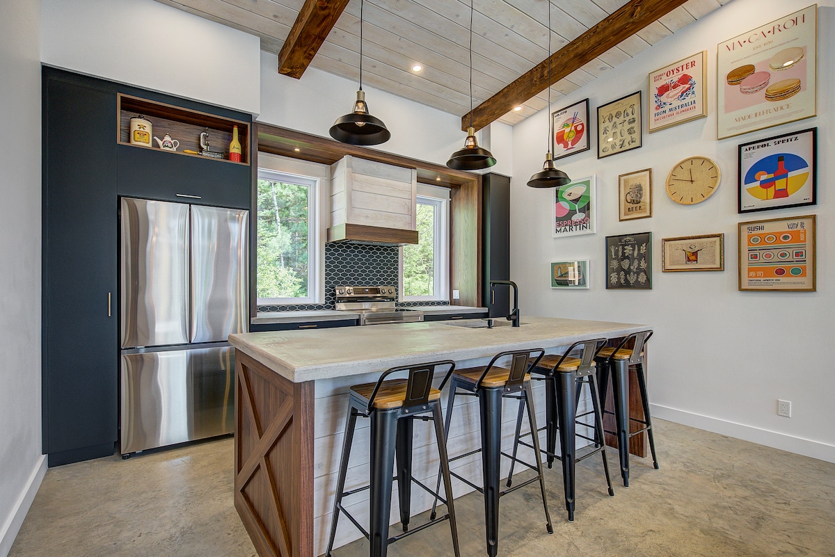 Nuestro chalet en el bosque nórdico es perfecto para pasar tiempo de calidad en pareja (o con un niño) o para un tratamiento de trabajo (con wifi de alta velocidad). El interior de madera es cálido y acogedor. Las ventanas de altura completa ofrecen unas vistas impresionantes sobre un valle boscoso. La cocina y la sala de estar de concepto abierto te mantienen en la conversación mientras cocinas. Si prefieres cocinar al aire libre, hay un fogón con parrilla y mesa de comedor al aire libre. A solo 70 minutos en coche de Montreal. El lago está a 25 minutos a pie si estacionás cerca.