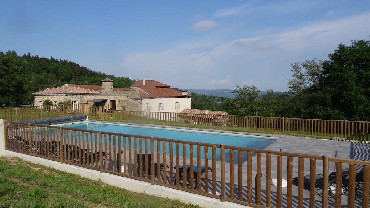 Situada en Ardèche Verde, nuestra casa de campo «La traboule» tiene 4* y está etiquetada como Parque Natural Regional de los Montes de Ardèche. Aislada y tranquila en el corazón del «Domaine de Fontréal» (antigua casa fortificada en 19 ha), a 800 m de altitud. Situada al borde de una ruta de senderismo, es ideal para los amantes de las piedras antiguas, la tranquilidad, la naturaleza y los paseos. Piscina de 16x6 de junio a principios de septiembre (dependiendo del clima). Cama hecha a su llegada. Ropa de cama y toallas incluidas. Aparcamiento, local bicicletas/ motos.