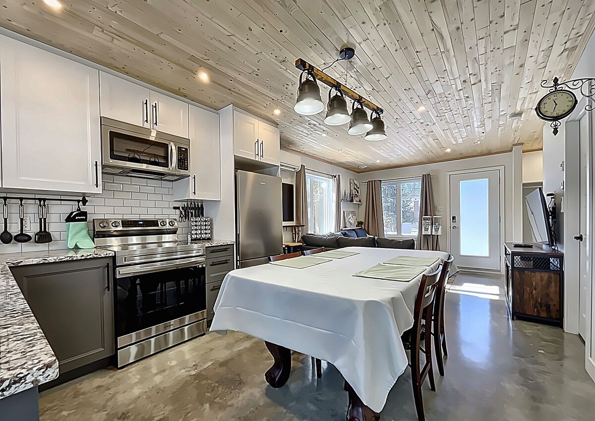 Ubicada a 20 minutos de las colinas del Mont Orford, esta casa de campo tiene todo para encantarte. Encontrarás una sala de estar con luz natural, un acogedor comedor, cocina totalmente equipada, dos dormitorios cerrados y un entresuelo de vidrio con sofá cama. Un patio (con barbacoa), una terraza enorme y el sótano también están a tu disposición. El chalet es ecológico. ¡Puedes disfrutarlo con total tranquilidad!
