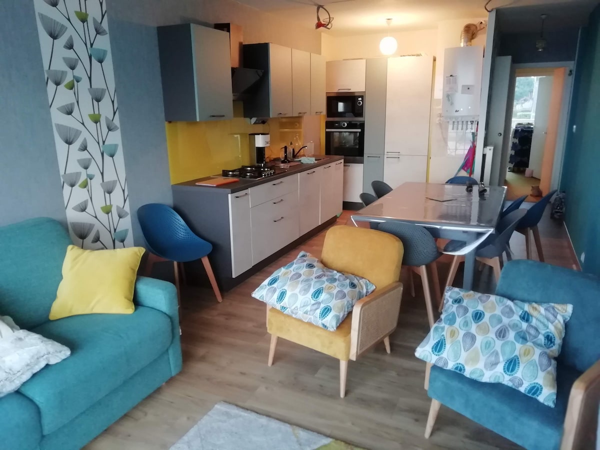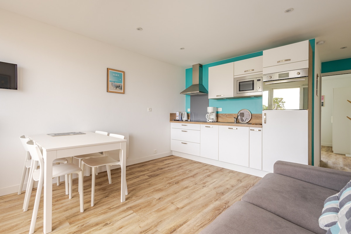«Les toits de Nazado» es un pequeño apartamento acogedor y luminoso, idealmente situado en el centro de Erquy en una residencia tranquila y segura (segunda y última planta, con ascensor), que incluye un garaje cerrado en el sótano con una toma de corriente. La playa se encuentra a 400 metros y las tiendas a 100 metros. Su ubicación es ideal, y un muy buen punto de partida para practicar senderismo en el GR34. El apartamento ha sido completamente renovado con materiales y muebles de calidad.