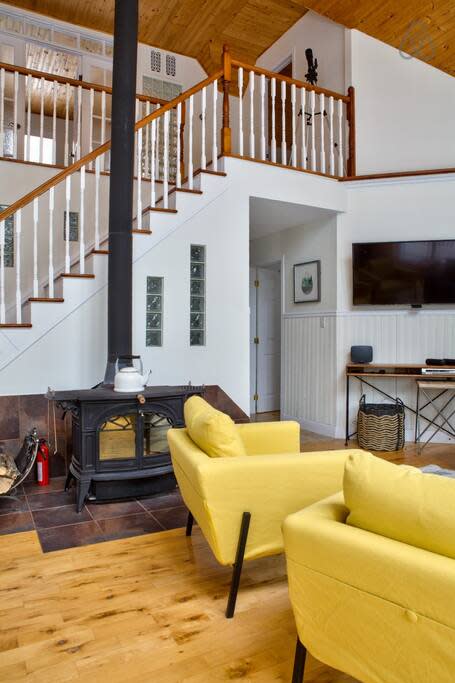 Ubicada a 20 minutos de las colinas del Mont Orford, esta casa de campo tiene todo para encantarte. Encontrarás una sala de estar con luz natural, un acogedor comedor, cocina totalmente equipada, dos dormitorios cerrados y un entresuelo de vidrio con sofá cama. Un patio (con barbacoa), una terraza enorme y el sótano también están a tu disposición. El chalet es ecológico. ¡Puedes disfrutarlo con total tranquilidad!