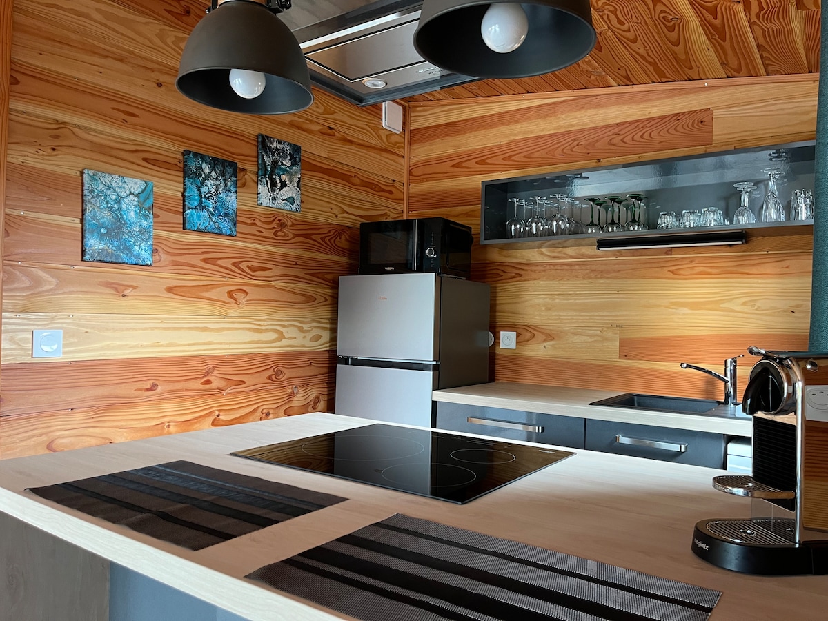 Placer y relajación son las palabras clave de este pequeño pedazo de paraíso para los enamorados. En MAYA HUEL, alojamiento de turismo de 5 estrellas, acogedor, nuevo y equipado, que combina la madera y la piedra natural, es la comodidad lo que prevalece. En la terraza, un gran baño nórdico, totalmente privado con led, jacuzzi y bañera de hidromasaje le espera, tanto en verano como en invierno, y le promete momentos de relajación bien merecidos. Entrega a domicilio de paquetes de comida (francesa o mexicana) y desayunos.