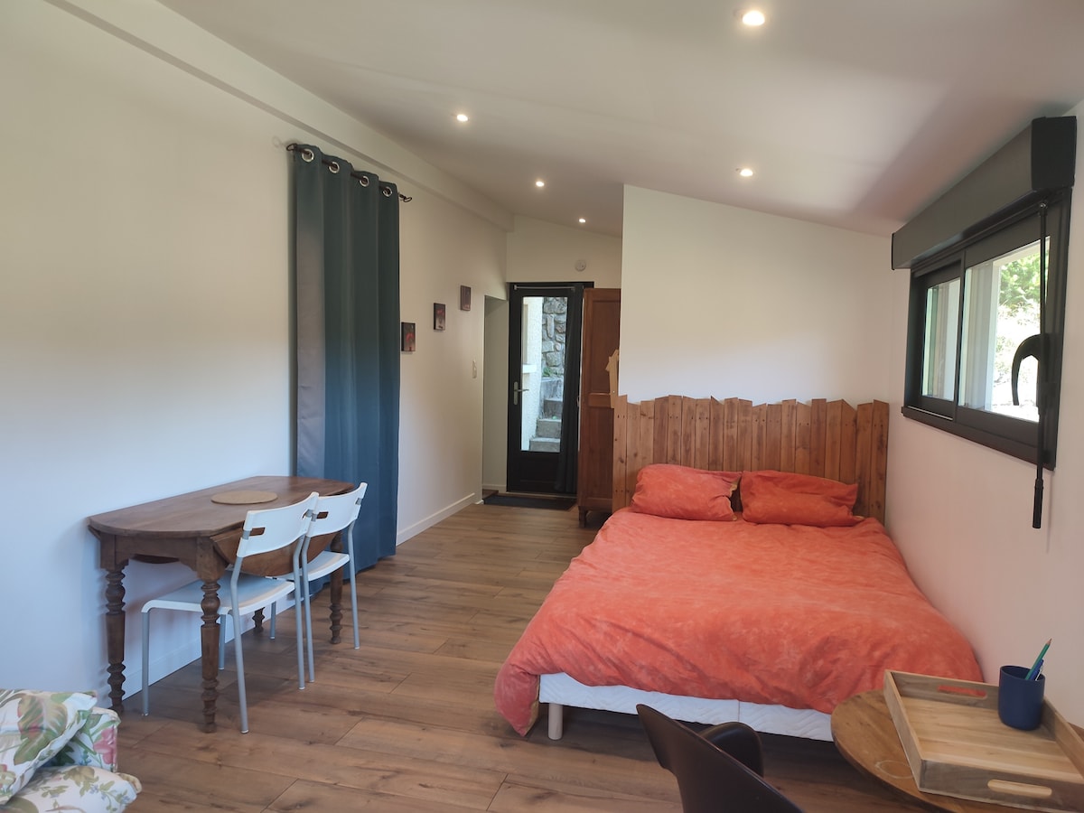 Situado en el corazón del parque regional de los montes de Ardèche, en el valle del Talaron, venga a disfrutar de un estudio de 30 m² independiente con vistas abiertas al valle, sin vecinos. El lugar ideal para recargar energías y disfrutar de la naturaleza. Tendrá acceso a numerosas rutas de senderismo con, entre otras, el Camino de los 5 sentidos y la Ruta de las dragonadas. Situado a 20 minutos de Cheylard y de la Dolce Via, a 40 minutos del Mont Gerbier de Jonc y a 50 minutos de Les Estables y del Mont Mézenc.