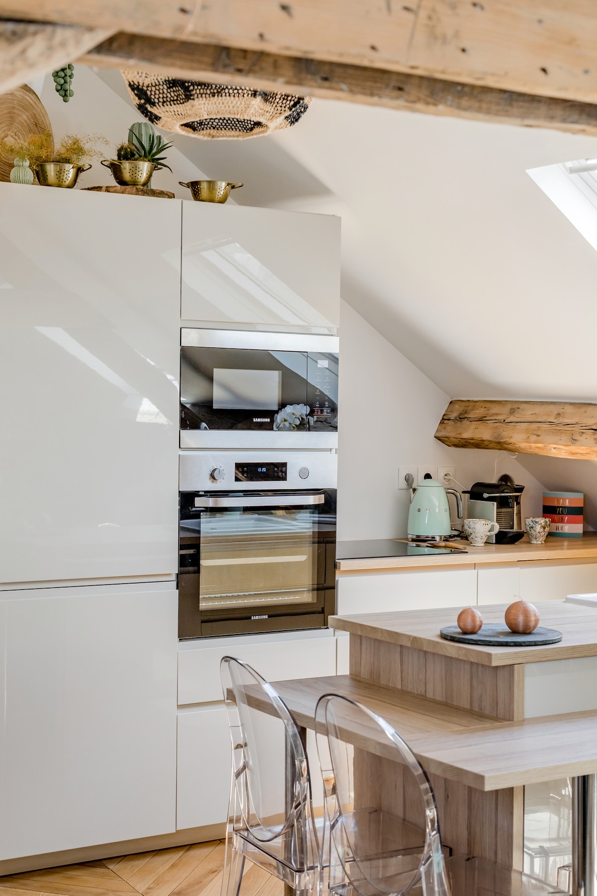 El hogar ideal lejos de casa: un elegante ático de 120 m2 situado en el centro de París, en el corazón del moderno barrio de Haut Marais, con un balcón soleado que ofrece magníficas vistas a la azotea. Lo mejor de la vida en un apartamento en una de las zonas más deseables de París.