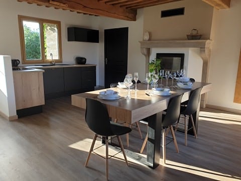 Casa fresca, cómoda y espaciosa (90 m2) en 2 pisos. Amplia cocina , salón y terraza a nivel de la calle y fabulosa habitación abierta de 1 dormitorio doble en el 2do piso. Una granja convertida en alojamiento, situada en una montaña en un pueblo medieval a 16 minutos de la A6, esta tranquila casa es una parada ideal para unas vacaciones en los Alpes o en el sur de Francia. Ten en cuenta que hay un estudio con su propia entrada en la planta baja inferior, alquilado por separado.