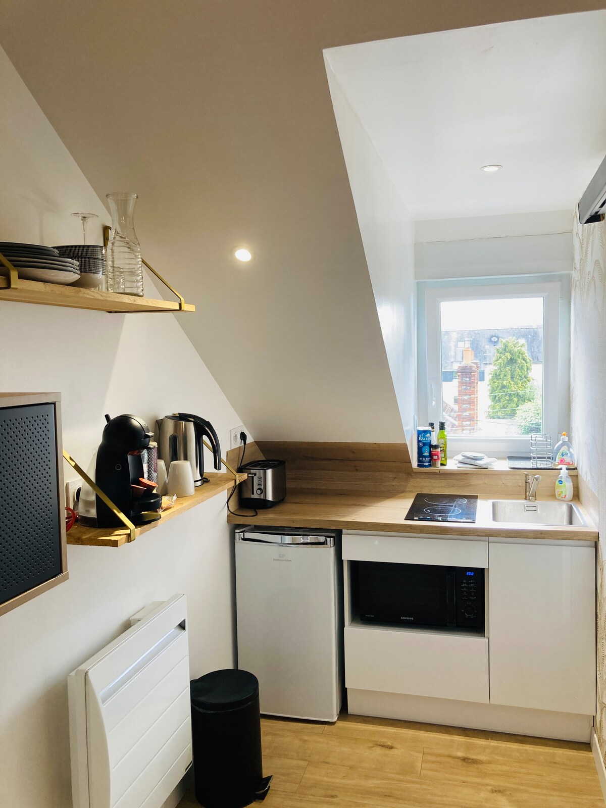 Situado en el corazón de Rennes, este estudio ofrece una elegante combinación del encanto de lo antiguo y la comodidad de la modernidad. Este apartamento con encanto recientemente renovado, está totalmente a su disposición con una zona de sala de estar-oficina para relajarse, una cocina totalmente equipada con vistas a la sala de estar con una zona de dormitorio con una cama tamaño Queen y un agradable baño.