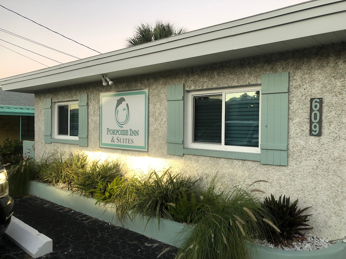 🐬 The Porpoise Inn & Suites es un encantador motel boutique ubicado en la mundialmente famosa playa de Clearwater. A solo unos pasos de la arena, las tiendas, los restaurantes, las atracciones e incluso una piscina recreativa, es el lugar perfecto para tu próxima escapada a Florida. Las suites recientemente renovadas cuentan con los elegantes toques de la vida costera que te encantarán, creando un espacio acogedor y acogedor para parejas. Vení por la ubicación, quedate por el encanto. 🏖️✨ (4 huéspedes como máximo, estrictamente aplicado, y no se permiten mascotas, estrictamente aplicado)