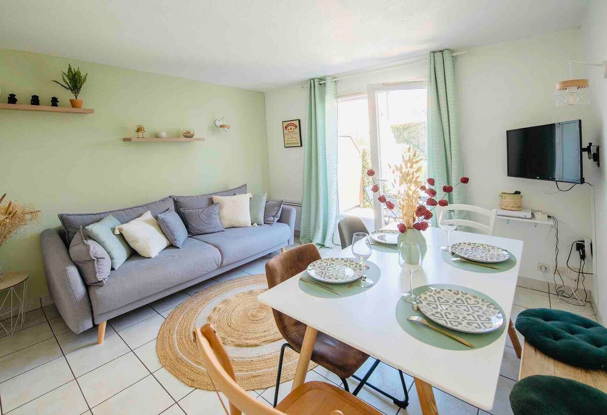 A 100 metros del océano, relájese en este alojamiento único y tranquilo con vistas al mar en el último piso. Pequeña terraza que ofrece unas vistas únicas. Ascensor. Plaza de aparcamiento segura y gratuita dentro de la urbanización. Acceso a la amplia piscina. Este apartamento ofrece todas las comodidades para una estancia en pareja. Posibilidad de teletrabajo en el lugar, zona de oficina en la habitación. Fibra y wifi. TV en salón y dormitorio. Cocina muy bien equipada. Cerca de tiendas y restaurantes sin coger el coche.
