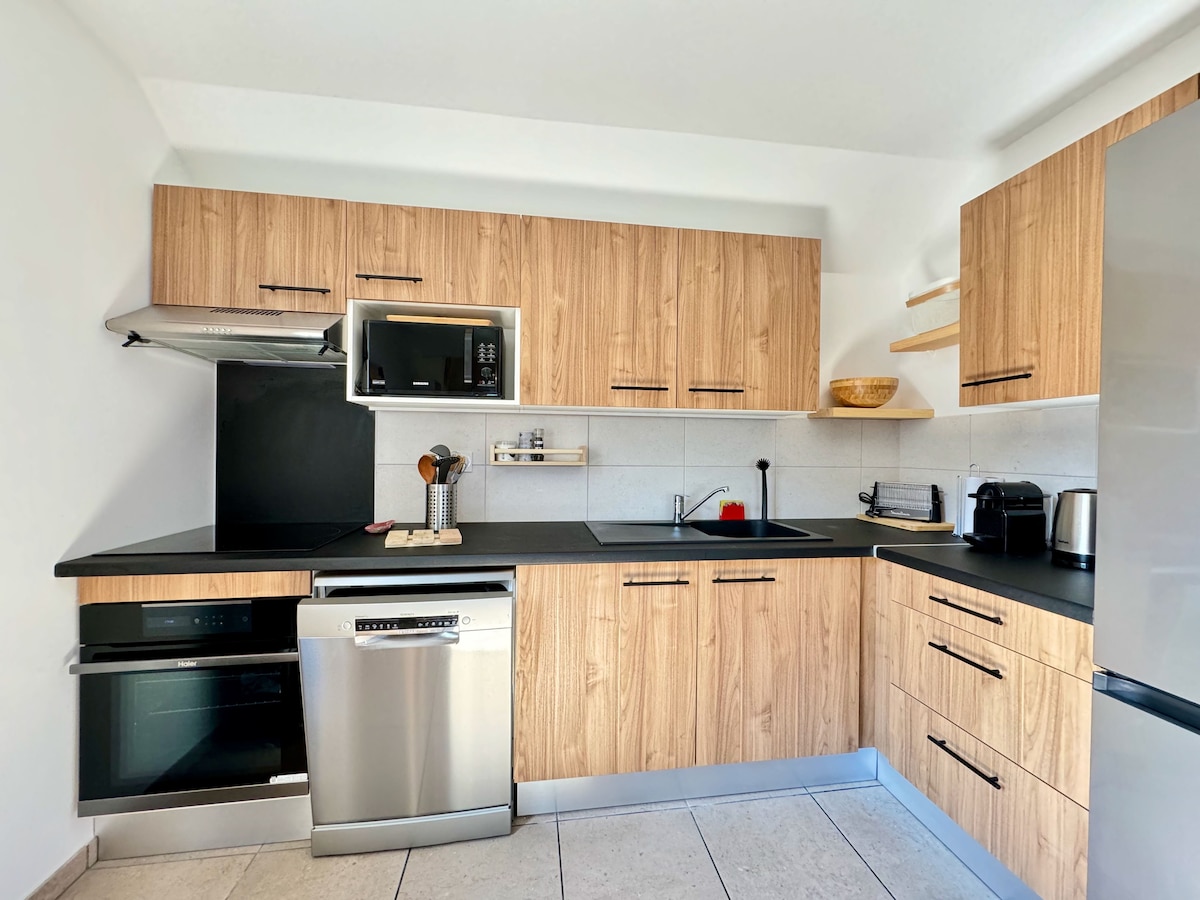 Mi apartamento está cerca de todos los servicios, ¡olvídate de tu coche! ¡El telecabina SKYVALL está a 5 minutos andando, el acceso al lago y a Balnéa está muy cerca! Le va a gustar mi alojamiento, clasificado amueblado de turismo 3*, por su ubicación con vistas a los tejados del pueblo, la montaña y los parapentes. En una decoración cálida y acogedora, pequeños y grandes encontrarán su felicidad, wi-fi, juegos para toda la familia, libros para niños, música, trineos están disponibles.