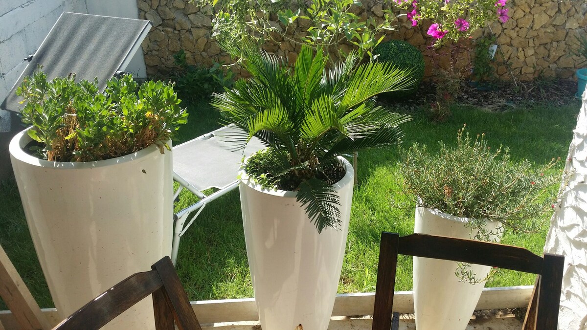 Cómodo estudio para 2/3 personas en la planta baja del jardín.