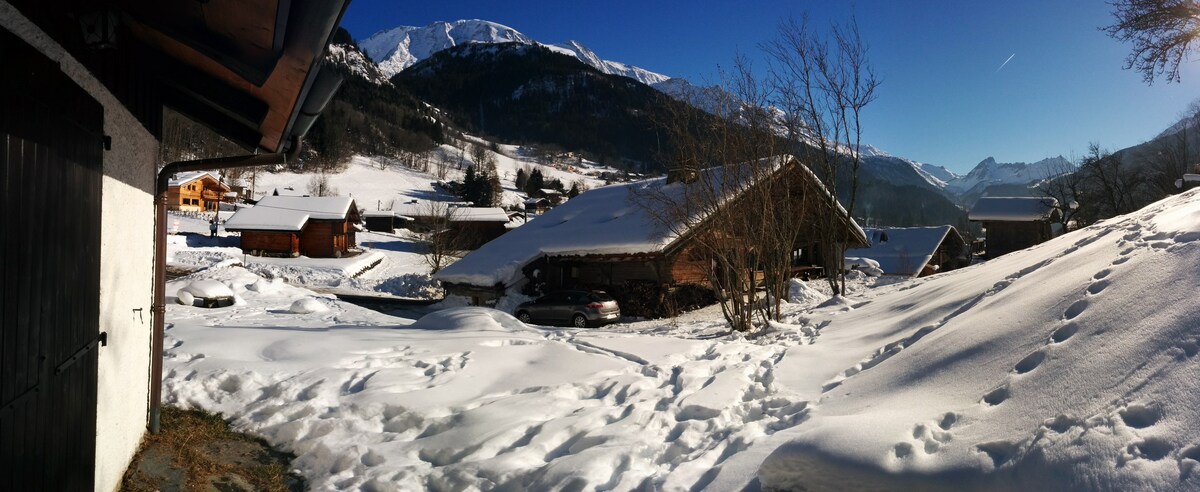 Appartement indépendant au rez de jardin d’une ferme entièrement rénovée située dans un hameau de montagne authentique calme et paisible entre Saint Gervais les Bains et les Contamines Montjoie. À 5 min des stations de ski , vous trouverez à deux pas de la location l'arrêt de bus pour les navettes gratuites. l’été de nombreuses randonnées pedestres ou VTT s’offrent à vous au départ de l' appartement qui est situé sur l’itineraire du tour du Mont-Blanc .