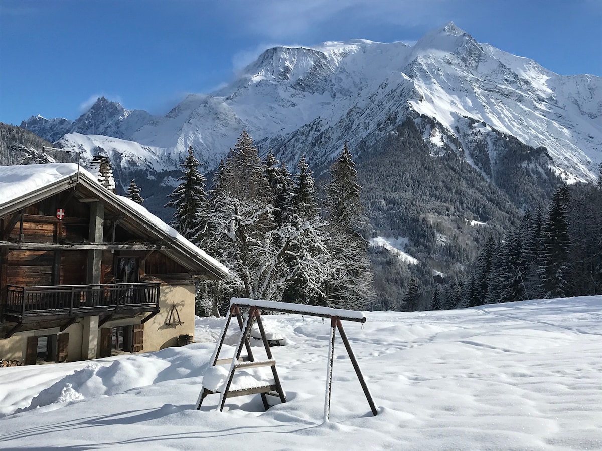 Charming Old Wood and Stone Chalet view Mont Blanc