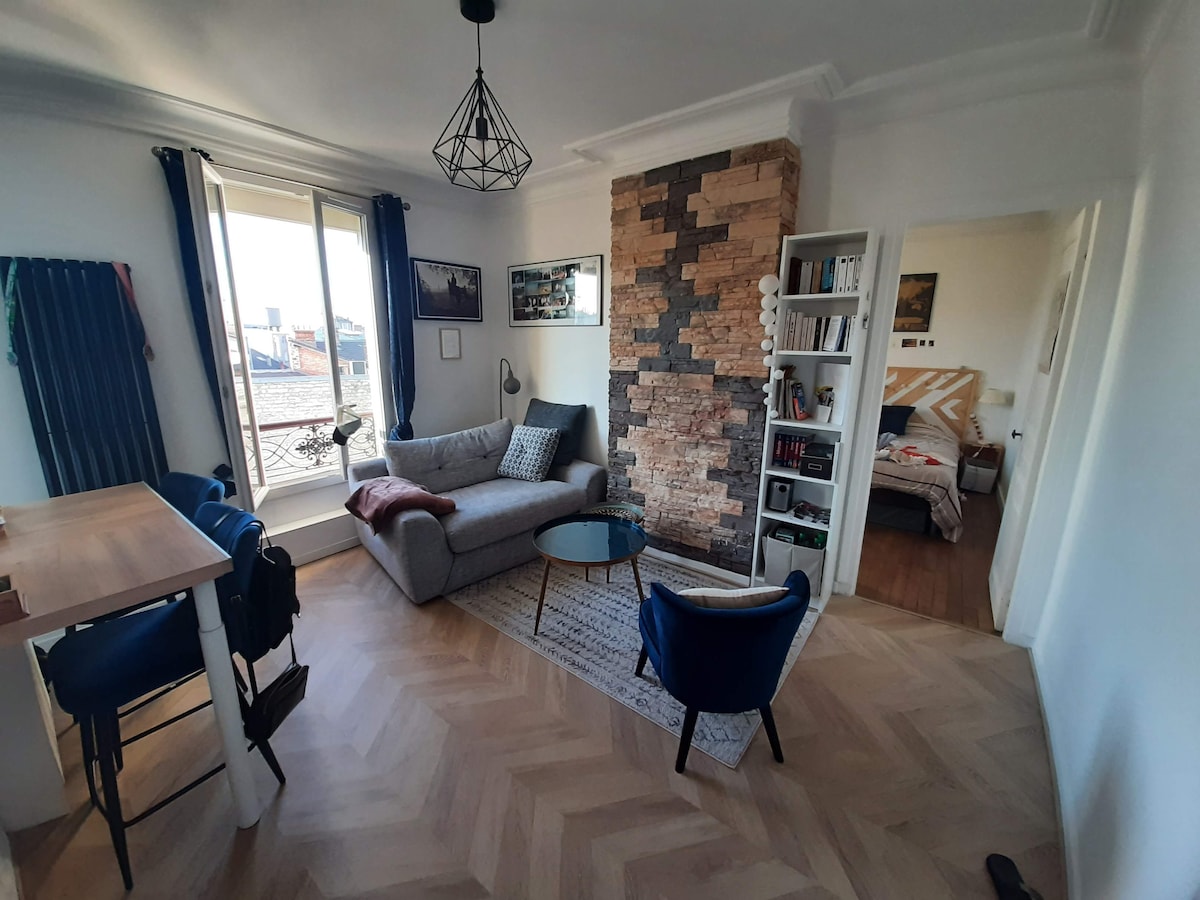 Appartement de 30m² au design élégant situé au pied des métros lignes 13 et 14. L'emplacement privilégié de cet appartement vous permet d'accéder facilement au cœur de Paris en 15min. Ce logement offre un accès facile à toutes commodités (le marché aux Puces de Saint-Ouen, restaurants, food-court etc.) L'appartement est bien équipé, avec un coin bureau. Il est idéal pour 2 personnes. L'appartement est situé en étage sans ascenseur, l'escalier en bois est confortable et très facile d'accès.