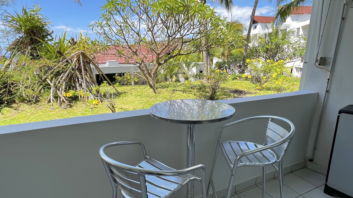 Rénovation 2026 - Appartement 2 pièces de 44 m² + terrasse, en open space classé 3*** avec grande cuisine, salon tv, douche italienne. Le Letchi à Boucan Canot vous accueille pour court ou long séjour au calme, vue sur la végétation tropicale, à 500 m de l'une des plus belles plages de l'île, idéal 4 adultes ou couples avec 1 ou 2 enfants. Parking sécurisé. Plage surveillée et sécurisée et grande piscine naturelle d'eau de mer. Situation privilégiée pour visiter l'île. Lit bébé nous consulter