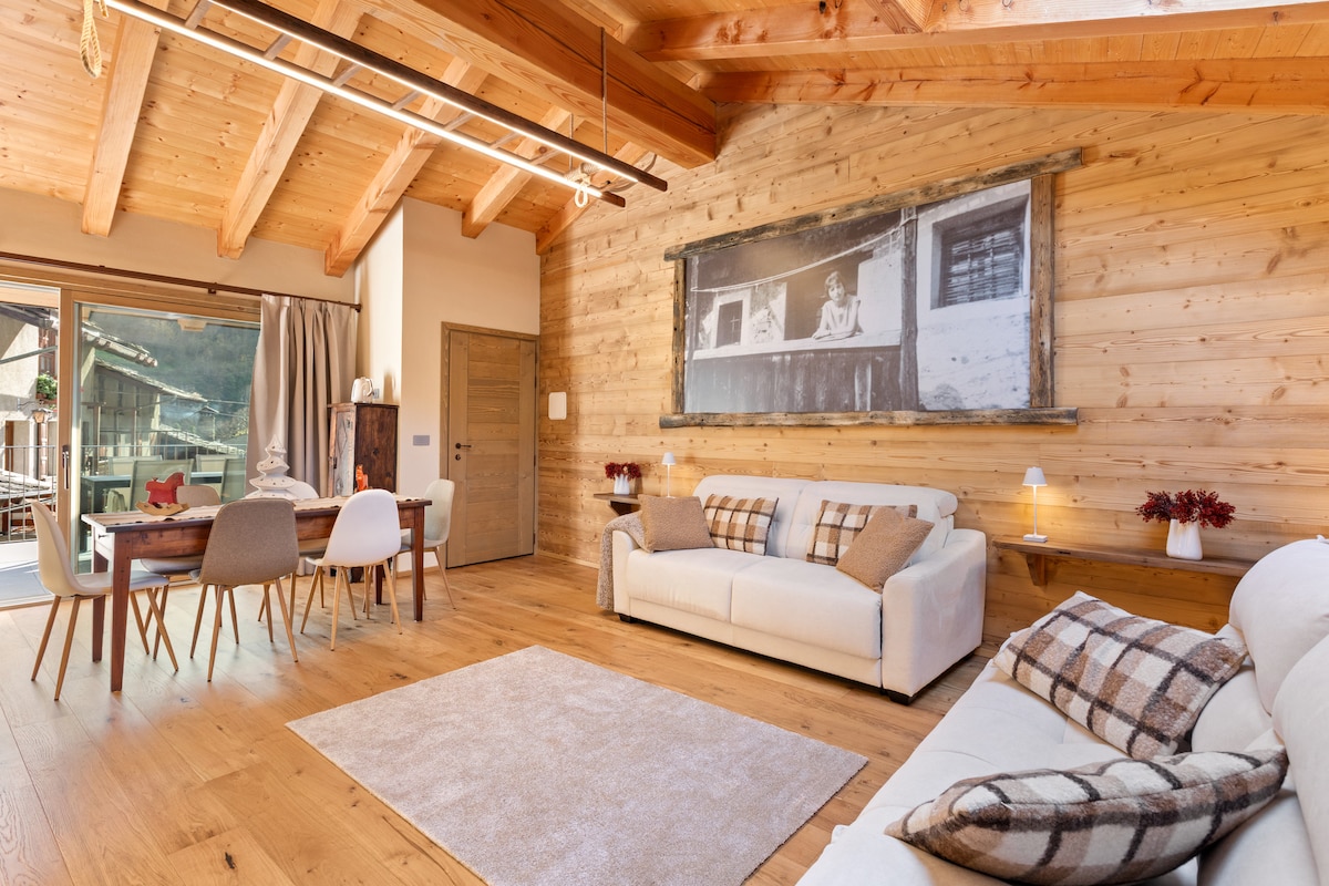 “La Casa dell’Arco” prende il nome dall’arco di ingresso, elemento tipico dell’architettura di Frassinetto, che caratterizza questa abitazione storica. Il suo nucleo più antico risale presumibilmente al XIII – XIV secolo. L’unità è composta da tre ambienti curati nel dettaglio per riscoprire la calda atmosfera delle case alpine. L’ambiente soggiorno con un divano/letto e camino precede la cucina ed a completare una splendida camera dotata di doccia e un bagno confortevole e attrezzato.