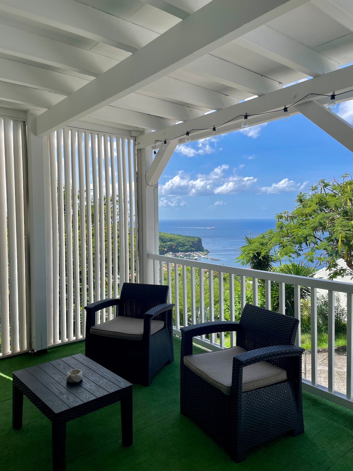 Situé sur les hauteurs du Carbet à 5 minutes de la plage, Kay Lucile vous offre un cadre paisible et ventilé, parfait pour un séjour en famille ou entre amis. Entièrement refait à neuf en 2025, cet appartement allie confort moderne et charme authentique. Depuis sa terrasse couverte privative, profitez d’une vue imprenable sur la mer et les couchers de soleil, un cocktail à main. Un cocon parfait pour se détendre !