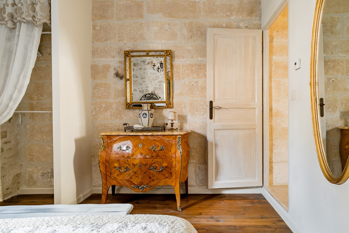 Con una ubicación céntrica a pocos pasos de todo en el pueblo, esta histórica casa de 3 dormitorios conocida como el Apartamento de los Ángeles cuenta con arquitectura original de piedra caliza del siglo XIV, vigas de madera a la vista, elegantes muebles antiguos franceses, hermosas cubiertas de cama provenzales y lujosos artículos de tocador de aceite de oliva de fabricación local. Disfruta de una bandeja de queso, aceitunas y baguettes recién salidas del mercado mientras contemplas las increíbles vistas de 360 grados de la Provenza en la terraza privada de la azotea.