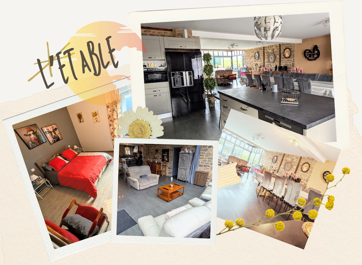 Encantadora casa de campo ,tranquila y elegante,le invita a relajarse. Estarás en un entorno verde y tranquilo. Situado a 5 minutos en coche de los aparcamientos del Mont y a 1,5 km a pie de los autobuses gratuitos Un local seguro para poner sus bicicletas está a disposición de nuestros viajeros. Terraza privada con muebles de jardín y sillón colgante la vía verde se encuentra a 1 km para agradables paseos hacia el Mont Saint Michel ,Pontorson o Cancale , Saint Malo
