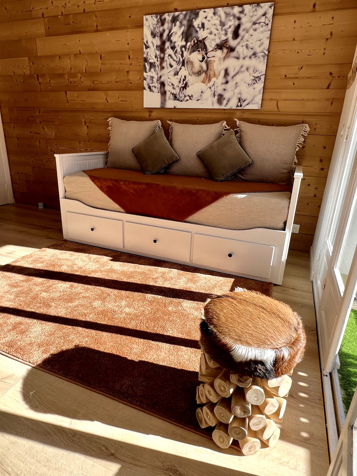 La cabane du val est nichée sur une propriété de 5 hectares, elle offre une vue panoramique sur les montagnes. Vous y trouverez le charme d’une construction en bois dans un écrin de nature, la possibilité de réserver des massages, des cours de yoga et un spa thérapeutique privatif professionnel 46 jets. Si nous sommes disponibles, nous serons ravis de vous proposer les petits déjeuner en supplément livrés à la cabane, faites la demande au moment de votre réservation.