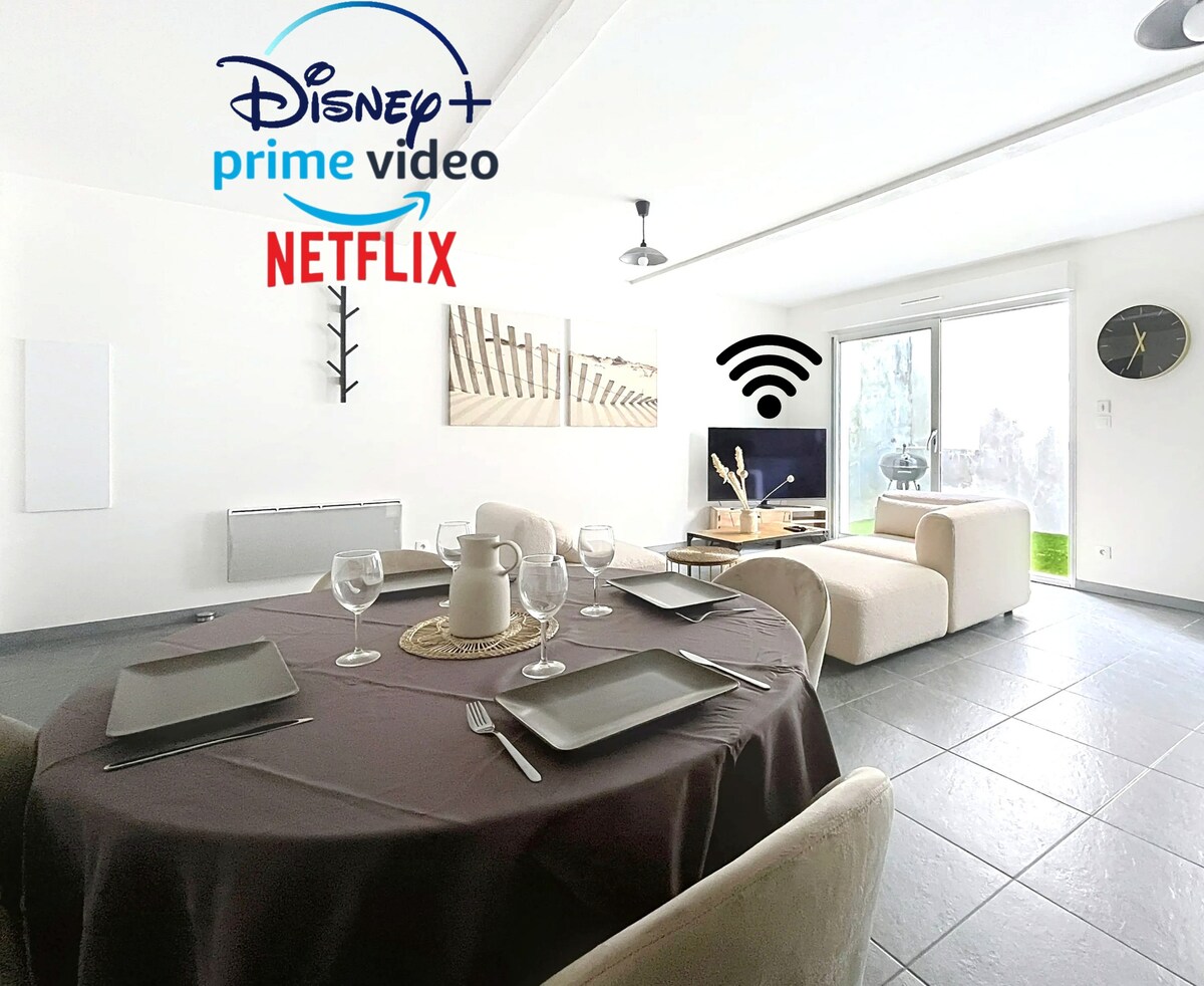 Relájate en esta tranquila y elegante casa con terraza. Una piscina disponible, así como un jardín arbolado de más de una hectárea, en el campo, pero a 7 minutos de un centro comercial. 1.ª habitación: 30 m2 con 1 cama de 160x200 y 1 cama de 90x200. 2.º dormitorio: 14 m² con 2 camas de 90x200 o 1 cama king size. Ropa de cama + edredones + almohadas nuevas (2025). Lavadora nueva. 2 refrigeradores. A 20 minutos del mar: Royan, Talmont sur Gironde. Cerca de Saintes, Burdeos, Cognac, La Rochelle, Iles Oléron y Ré.