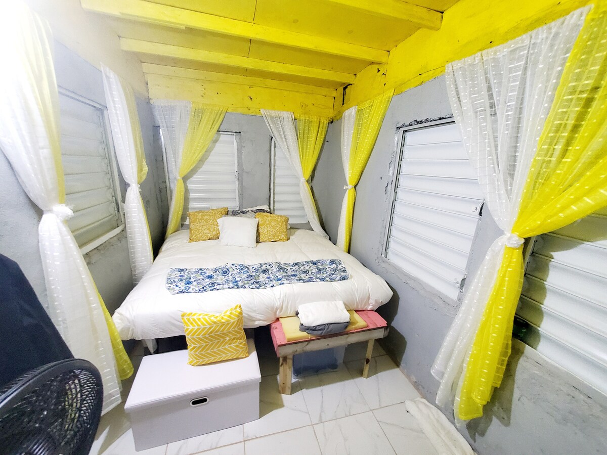 Estudio tranquilo de 1 dormitorio | Cama completa • Wifi • Estacionamiento • Alquiler de vehículos disponible ¿Estás buscando un alojamiento tranquilo y cómodo en San Cristóbal? Este encantador departamento estudio de 1 dormitorio se encuentra en la tranquila comunidad de Half Way Tree, a solo 10 km de Basseterre, la combinación perfecta de relajación y comodidad. El espacio es ideal para un máximo de 2 huéspedes. La habitación está equipada con un microondas y una mininevera, perfecta para comidas sencillas y refrigerios. ¡Reserva tu estadía hoy mismo!