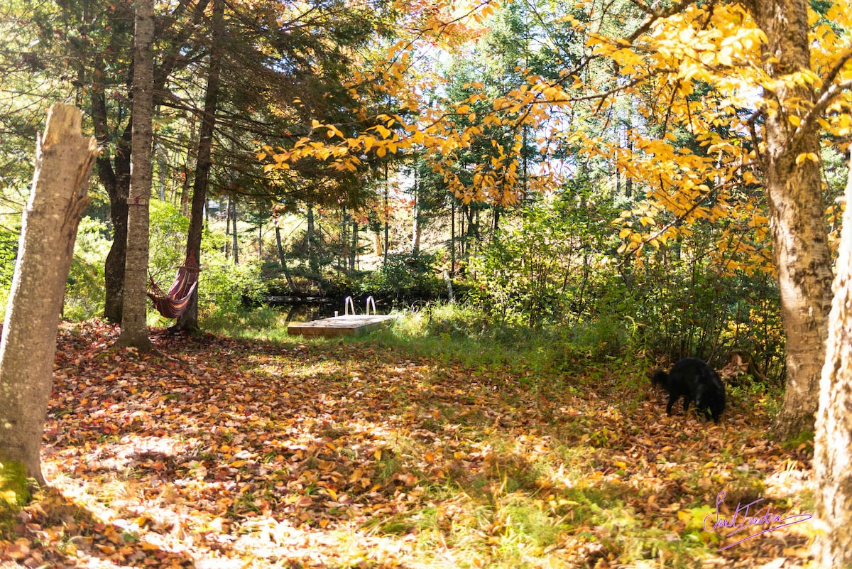 Gorgeous family and group-friendly ecological chalet amid 100 acres of beautiful forest bordering vast tracks of protected public land. Exquisite view on trout stream and forest. Walking distance to three lakes. Trails for hiking, biking, and cross-country skiing accessible directly from the property. Great for being together but retaining privacy - each bedroom has its own toilet! Off-grid energy system makes the house fully autonomous without sacrificing comfort.