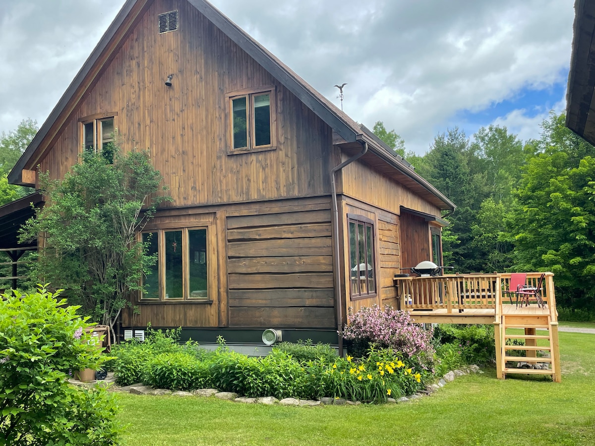 Una hermosa casa de troncos hecha a mano en 100 acres de bosque maduro. Rutas de senderismo/ciclismo/esquí, todas privadas y cartografiadas. El pequeño lago/estanque está a pocos pasos con muelle para nadar/tomar el sol y un bote de remos para remar. Cocina gourmet con encimeras de hormigón, cocina de hierro fundido Aga con 4 hornos y una gran isla es el sueño de cualquier cocinero. Porche con pantalla grande y sala de juegos en el sótano con mesa de billar de pizarra de calidad. ¡Y para rematar, toda la casa funciona con energía solar! Absolutamente impresionante.