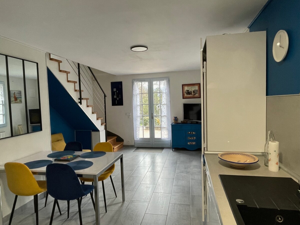 Bienvenidos a nuestra casa, Françoise, Francis y nuestra perra Golden retriever muy amable. Se alojará en una dependencia reformada en un estudio de una sola planta situado en el patio de nuestra casa de campo. El estudio Una habitación que consta de una cocina equipada, una sala de estar, una zona de oficina y una cama para 2 personas posibilidad de acomodar a un bebé, bajo petición. Un cuarto de baño. Calefacción eléctrica.