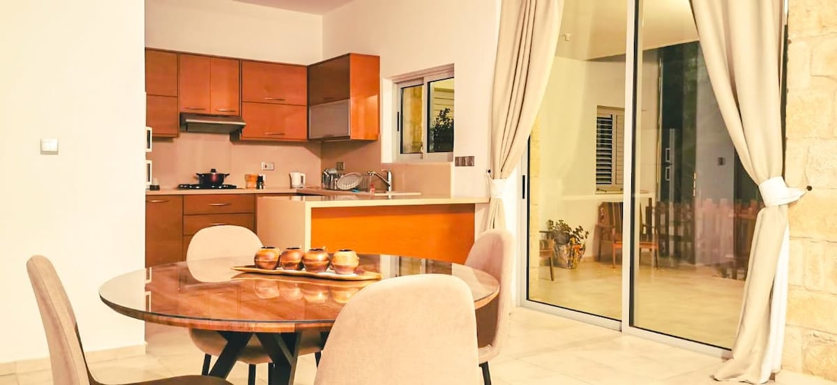 Step into serenity! Escape to a sun-soaked hideaway on a tranquil hillside. Lounge by the pool, soak up the sun, and savor breathtaking sea views and golden sunsets. Just a 15-minute drive from Paphos, our two charming studios are the perfect base to explore. Beaches, nature trails, Harbour, Blue Lagoon, and Paphos old town, are all 15–30 min. drive. Free Wi-Fi, parking, a village square with taverns and a vino bar, just a 4-min. drive. Car is essential.Pool open all year-round (not heated).