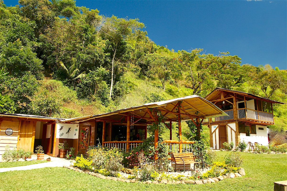 Venez vivre une expérience unique dans un cadre idyllique ! A quelques minutes de Salento, dans une finca arborée, vous pourrez observer une cinquantaine d'espèces d'oiseaux, profiter d'un excellent petit déjeuner (compris dans le prix) préparé avec les produits de la maison ou vous prélassez sur la terrasse de votre cabane ou de la maison principale, en regardant le temps passer :-)