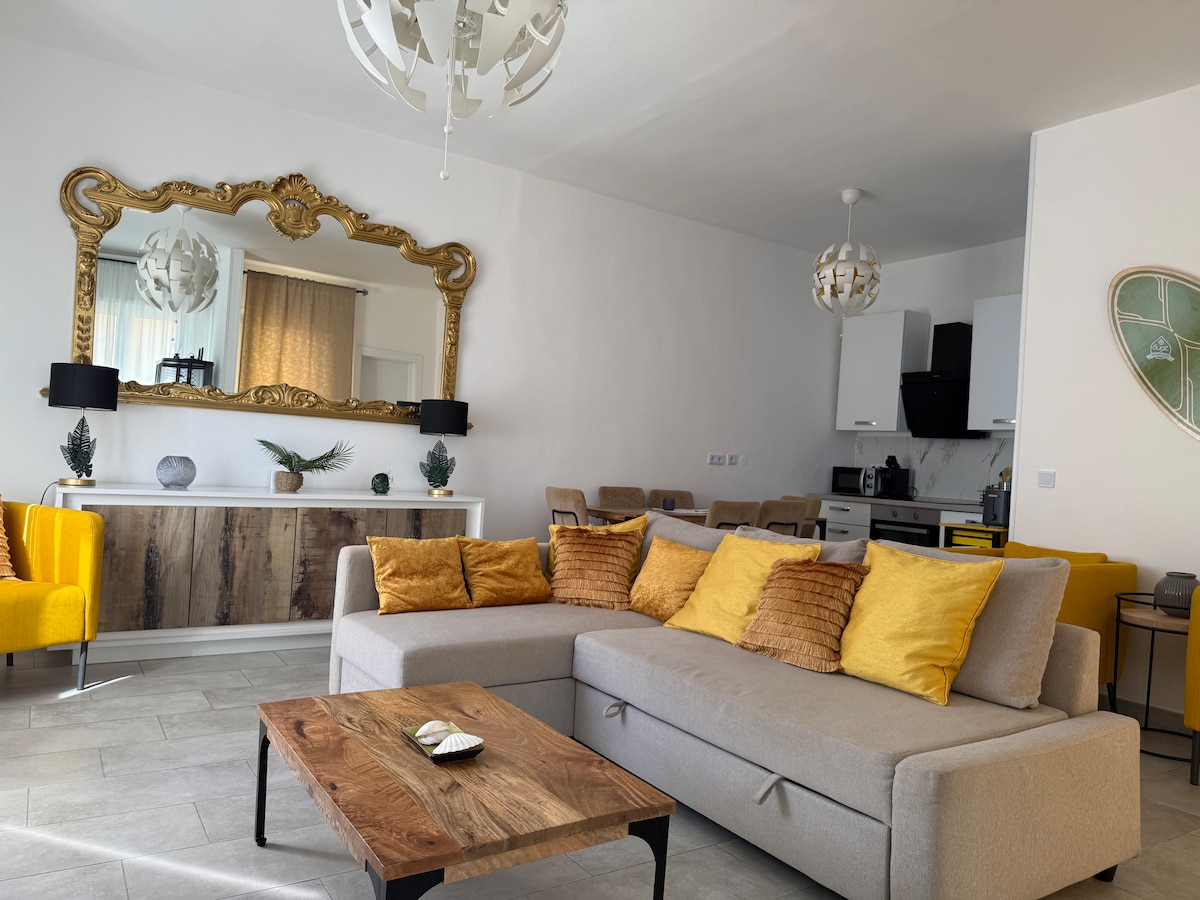 Una excelente solución para aquellos que quieren experimentar el mar a todas horas del día, es una playa que consta de dos dormitorios dobles, cada uno con su propio baño, y una cocina con vistas al mar con un sofá cama. Lo más destacado es, sin duda, la espaciosa terraza con vistas al mar desde la que puedes disfrutar de las maravillosas puestas de sol y está equipada con mesa, sillas y sombra eléctrica. Para nuestros huéspedes, kits de cortesía de higiene personal y del hogar. Zona bien comunicada con empresas