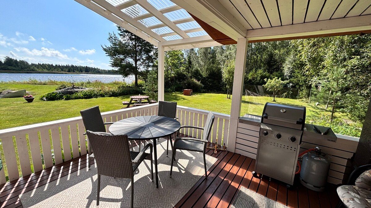 Una idílica casa de campo de verano, ubicada en la playa occidental, ofrece el alojamiento perfecto para un máximo de 6 personas. El plano de planta abierto de la cabaña consta de una sala de estar, comedor y cocina totalmente equipada. Un dormitorio está ubicado en la planta baja y hay un espacioso loft para dormir arriba. Hay un baño interior totalmente funcional con inodoro y ducha. Grandes terrazas al aire libre rodean la cabaña y hay un edificio de sauna separado. Una carretera para vehículos va hasta la cabaña