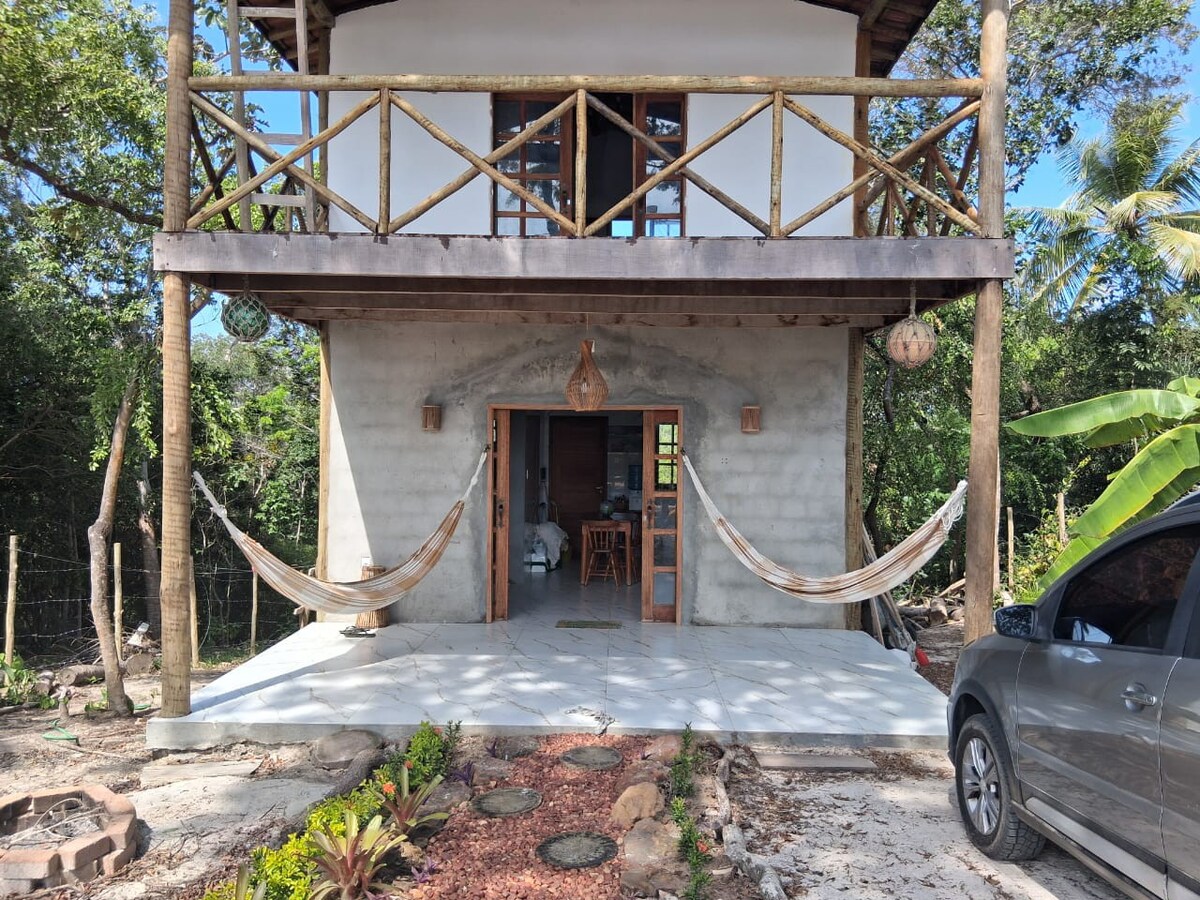 Refúgio aconchegante em meio à natureza da Reserva Sapiranga, em Praia do Forte. Casa charmosa, rodeada de verde, perfeita para quem busca tranquilidade, conexão com a natureza e descanso, sem abrir mão da proximidade das praias, vilinha e cachoeiras da região. Ideal para casal, família ou viajantes que desejam desacelerar e viver dias de paz em um ambiente acolhedor e exclusivo área ampla de 1.400 m 🌿✨🌙🌈🏕️🛖