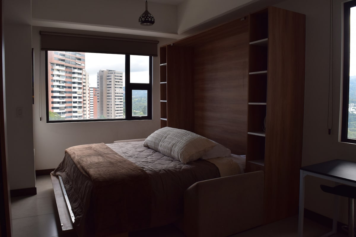 Fully equipped luxury apartment that can sleep two people located in the best location of Guatemala City (5 min. from the airport) with amazing views to the volcanoes and the metropolitan area. The apartment comes with a fully equipped kitchen, washer dryer, TV, WiFi, parking, GYM and recreational area for family/friends. Wether you're here for work or getaway, we're sure that our apartment will be your perfect home. We're excited to bring you and your guest unparalleled style and service.
