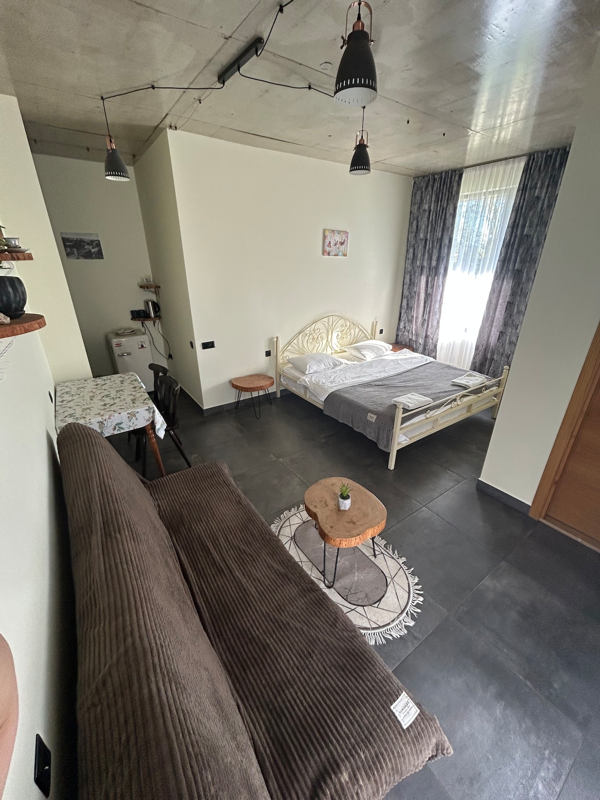 Disfruta de una estancia elegante desde muy cerca del centro de la ciudad (4 km) NUEVO apartamento en la 1ª planta con terraza y hermosas vistas al jardín verde. El huésped encontrará apartamentos totalmente amueblados y bien iluminados, con todas las comodidades que pueda necesitar para una estancia corta o larga. El espacio está equipado con nevera, hervidor, accesorios de madera natural hechos a mano (por mí) y todas las comodidades necesarias para una estancia cómoda. ¡El traslado GRATUITO desde el aeropuerto de Kutaisi se puede hacer si reservas 7 o más días!