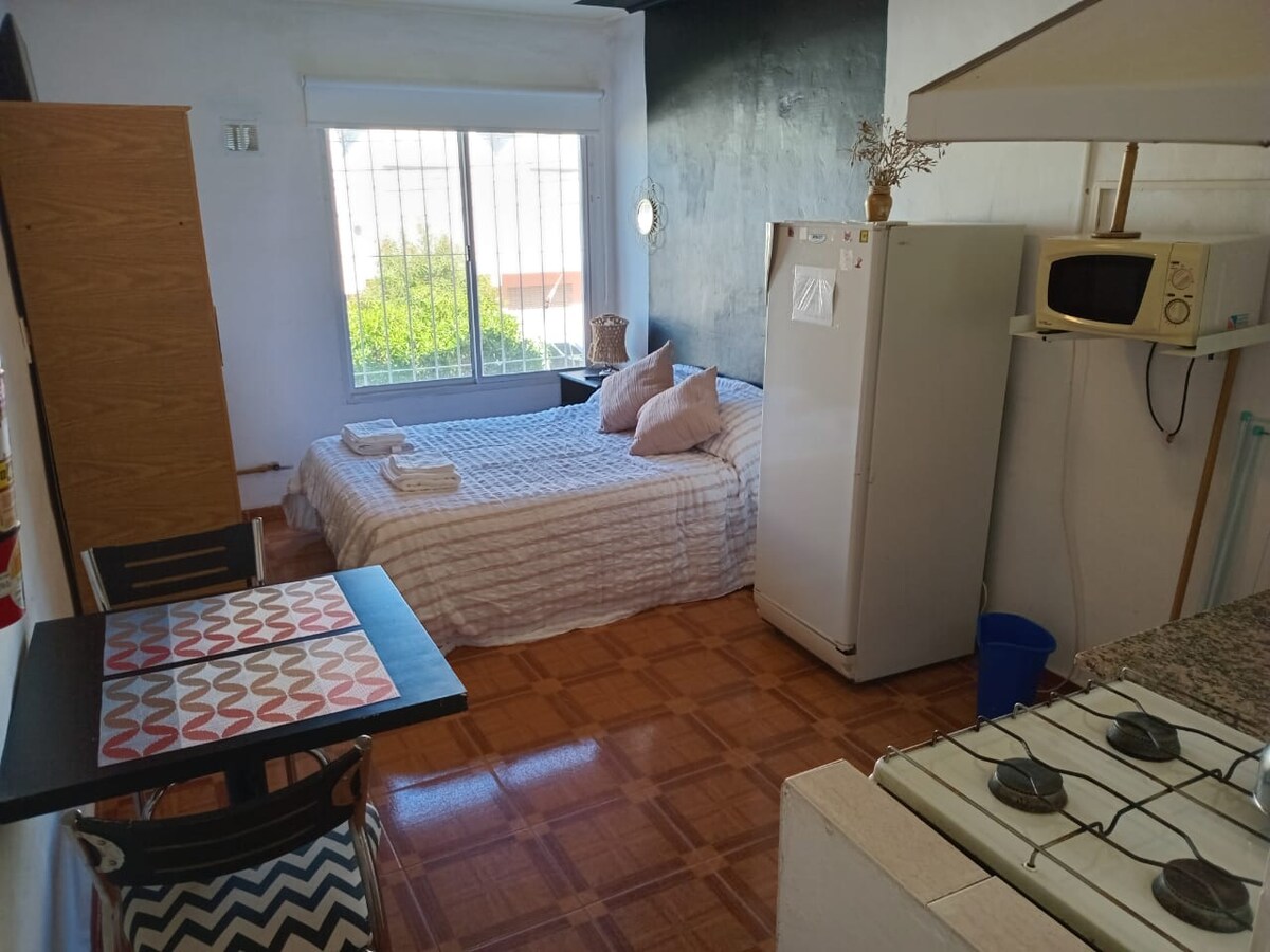 monoambiente muy amplio, para 2-3 personas, adaptado para personas con movilidad reducida, a solicitud colchón antiescaras. WiFi, tv. smart, heladera, cocina con horno, vajilla basica,sábanas, calefacción. ventilador, muy fresco. Área de parrilla, asador, disco, con mesas y sillas en exterior. Estacionamiento y parrillas compartido. Cuenta también con un futton que puede ser utilizado para dormir niños. A solicitud cuna practicuna.