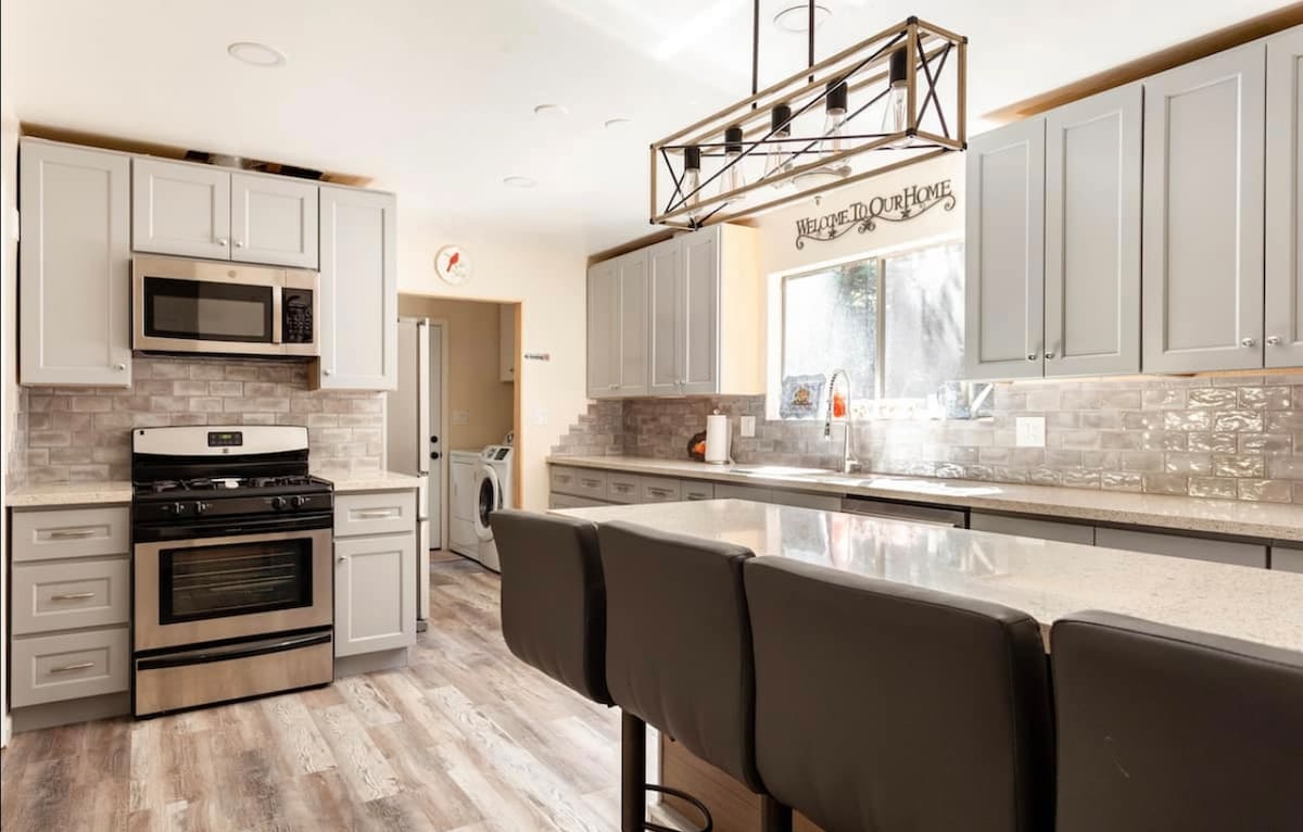 Encantadora cabaña de 3 dormitorios y 1,5 baños. Este refugio acaba de ser renovado recientemente e incluye un jacuzzi para más de 6 personas para relajarse. 15 al este de las pistas. ¡Tenemos televisores HD grandes en cada dormitorio, suelos nuevos, ropa de cama y sábanas nuevas y mucho espacio para todas tus necesidades vacacionales! Gran patio trasero vallado, con una hermosa terraza de madera con barbacoa. El huésped principal que reserve debe tener un mínimo de 25 años y debe permanecer en el retiro durante la duración del alquiler. Consulta las normas y políticas adicionales para obtener más información.