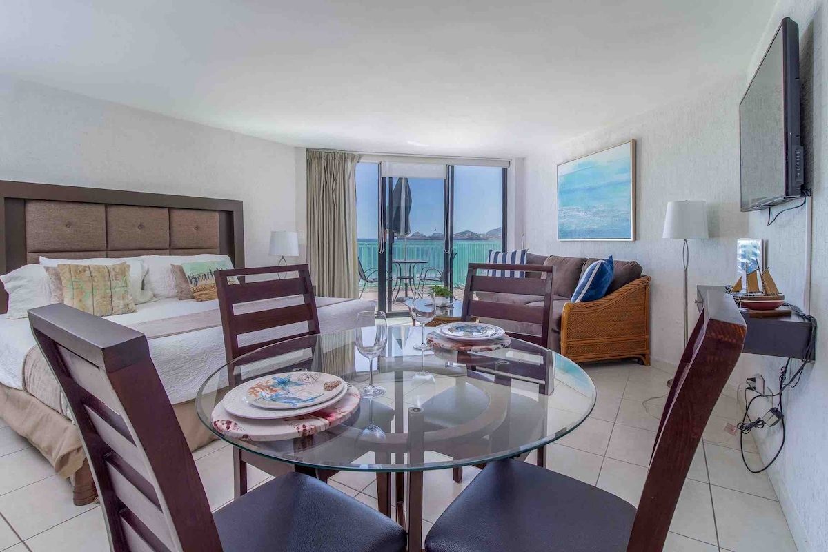 ¡Ahora clasificado como el destino número 1 en San Carlos por Trip Advisor! Trae a tus amigos y familiares y disfruta de este hermoso apartamento esquinero de 3 pisos en Playa Blanca. ¡Un espacioso apartamento de lujo de 2700 pies cuadrados, 3 dormitorios con capacidad para más de 6 personas cómodamente con impresionantes vistas al mar! Libre de humo y mascotas.